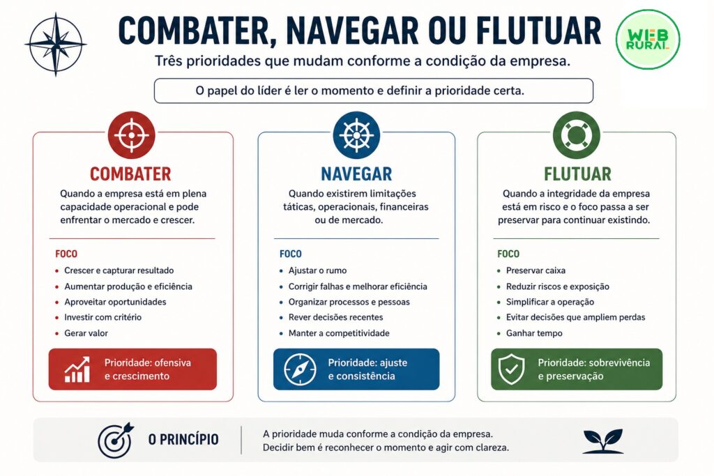 Combater, navegar ou flutuar: como eu oriento decisões em empresas do agro